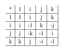 Le corps des quaternions est une extension non commutative du corps des complexes; la construction mathématique est totalement hors sujet pour nous, on va se contenter de ces quelques bribes :